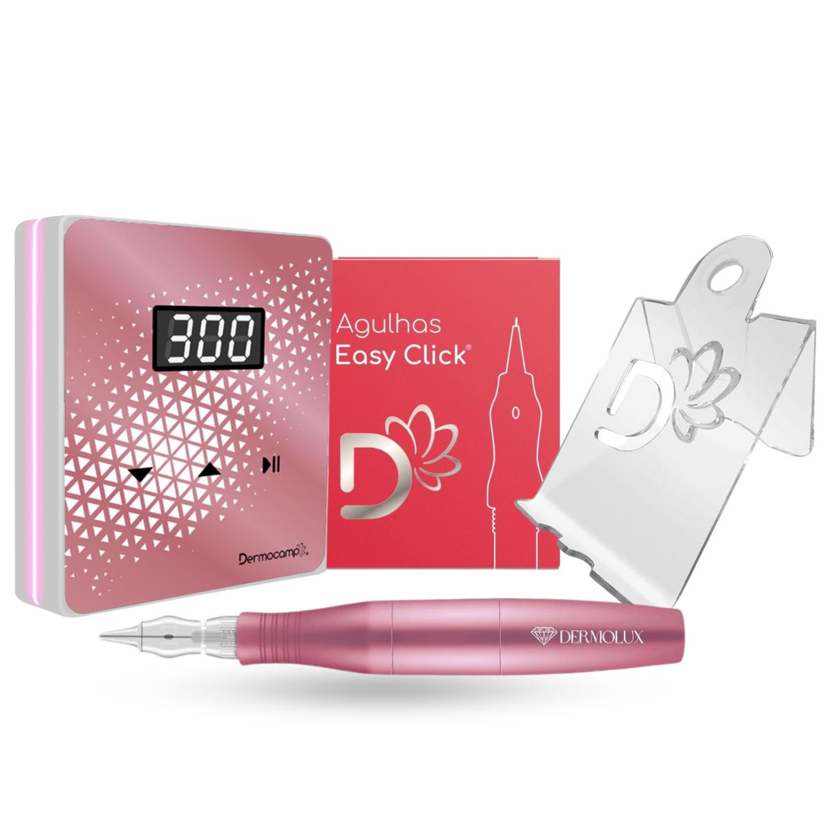 Dermografo Dermolux Rosa + Controle Slim Rosa + Agulhas + Brinde Dermocamp